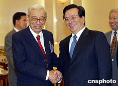 中国国家副主席曾庆红六月十五日在北京人民大会堂会见前来出席“和平共处五项原则国际研讨会”的联合国前秘书长加利。中新社记者:毛建军