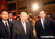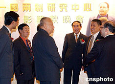 为迎接香港特区成立七周年,一国两制研究中心于6月15日晚在会展中心举行《邓小平》电影筹款。图为特首董建华及众多嘉宾莅临出席首映礼。中新社记者:赵振清