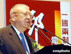 香港特首董建华,6月15日晚出席香港一国两制研究中心在会展中心举行的《邓小平》电影首映筹款活动,并在仪式上发表讲话。 中新社记者:赵振清