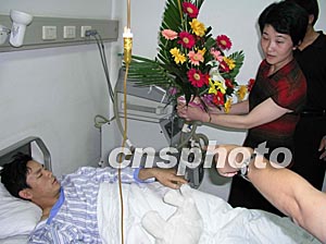 在看望江西籍伤员时,祝美清向他们介绍了家乡的情况,希望他们安心养伤;在看望山东籍伤员时,她带来了广丰人民的问候。在看望受伤工人之前,广丰县慰问组看望了两位江西籍伤员的家属。据悉,这两位伤员的家属有蒋昌泉的姐姐和妻子,徐启松的侄子,他们也是今天上午到达济南的,并且已经看望了自己的亲人。记者了解到,祝美清一行是昨晚由广丰县驱车到达杭州,今早八点由杭州飞抵济南的。
