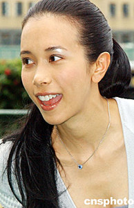 香港歌星莫文蔚,六月十七日出席在香港跑马地马场举行的“2003/2004香港赛马会冠军人马颁奖典礼”打气活动。中新社记者:钱兴强