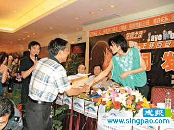 中新网6月18日电 据香港大公报报道,王菲将首次在西安举行个人演唱会。在记者会上,有十名之前玩游戏胜出的歌迷,可以进入记者会见偶像,期间有一名男士竟写了一首诗公然向“阿菲”示爱。