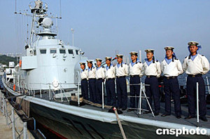 为庆祝香港回归七周年,中国人民解放军驻港部队决定在七月一日开放赤柱、昂船洲和石岗军营给香港广大市民参观,进一步增进香港各界对驻香港部队的了解。图为驻港部队昂船洲海军舰艇与官兵。中新社记者:钱兴强