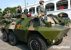 为庆祝香港回归七周年,中国人民解放军驻港部队决定在七月一日开放赤柱、昂船洲和石岗军营给香港广大市民参观,图为驻港部队装甲兵风采。中新社记者:钱兴强