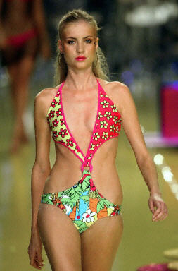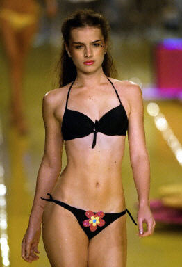6月22日,在巴西圣保罗时装周上,模特们展示了设计师Poko Pano设计的性感比基尼。