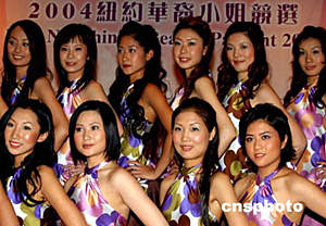 中新网纽约6月22日电(记者 赵海燕)当地时间六月二十二日,入围二零零四年纽约华裔小姐竞选初赛的二十四名佳丽首次公开亮相。