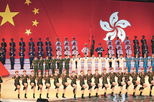 在“香港你好”一章中,艺术团还特别演唱了“狮子山下”、“东方之珠”等反映香港市民生活和自强不息的歌曲。“携手踏平崎岖……用艰辛努力写下那不朽香江名句”,市民熟悉的歌词在场内回旋,这是香港人的心声,也是艺术团对香港的美好祝愿,数千名观众以如潮的掌声热烈回应艺术家们的深情祝福。
