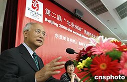 二十四日,由北京奥组委主办的第二届“北京二零零八奥林匹克文化节”系列活动在北京举行,国际奥委会文化与教育委员会主席何振梁为文化节开场活动——北京二零零八奥运国际论坛二零零四大会开幕致辞。中新社记者:廖文静