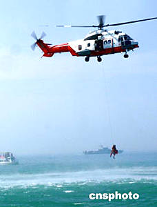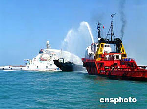 中新社三亚六月二十六日电 (记者 邱江波)今天上午九时至十一时,中国交通部和海南、香港两地军警政府等部门联合在三亚附近的南海海域举行了海上联合搜救演习。