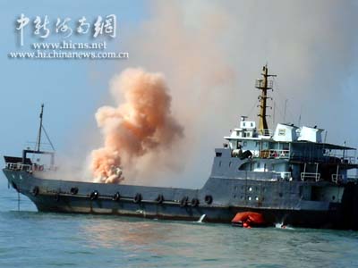 上午九点正,搜救演习指挥船粤海铁上空升起三颗耀眼的信号弹,预先放置在南海指定海域“海难遇险船”“南海号”甲板上冒出红色和白色两种烟雾,驻守在南海附近的中国搜救队伍得到求救信号:“海难”发生了。