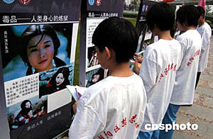 六月二十六日是国际禁毒日,北京朝阳警方会同有关部门在朝阳公园举行禁毒展览,并组织禁毒志愿者进行有关禁毒知识的问卷调查。作者:任海霞