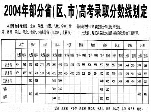 中新网6月26日电 据《中国教育报》综合各地消息:北京、陕西、山西、吉林、宁夏、甘肃、海南、重庆、河北、安徽、河南等省(自治区、直辖市)普通高校招生录取控制分数线近日划定。