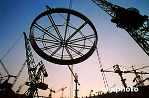 三峡电站右岸厂房十八号发电机组的引水压力首节钢管,六月二十八日晚八时顺利吊装就位。此钢管内径为十二点四米,厚五十八毫米,首装节重三十六吨。此项工程的顺利完成对三峡三期工程大坝混凝土浇筑工序具有重要意义。作者:孙荣刚