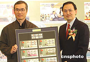 其后,蒋任宏署长向王玉仁少将及邮票设计师何志仁致送镶有这套特别邮票及首日封的框架,以作留念。
