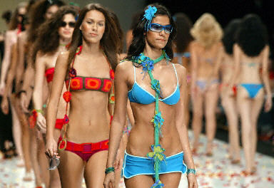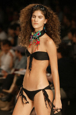6月30日,里约热内卢时装周上模特展示设计师Miquelina设计的比基尼。