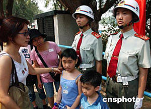 为庆祝香港回归祖国七周年,进一步增进香港各界对驻港部队的了解,中国人民解放军驻香港部队于七月一日举行三军军营开放活动,图为众多香港市民冒酷热来到军营参观。作者:钱兴强