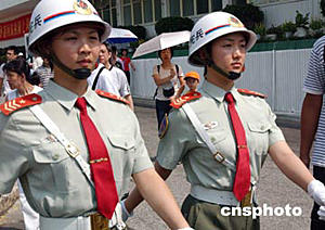 今日是香港回归七周年纪念日,大批香港市民冒着高温酷暑,踊跃前往解放军驻港部队军营参观,在赤柱、昂船洲、石岗三个开放的军营里,充满了市民对解放军威武文明之师的赞誉,以及军民联欢的笑语。