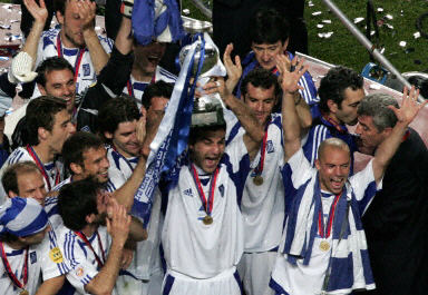 中新网7月5日电 在北京时间今天(5日)凌晨结束的2004年欧洲足球锦标赛决赛中,希腊队凭借前锋查里斯特亚斯的入球以1:0击败东道主葡萄牙队夺得冠军。