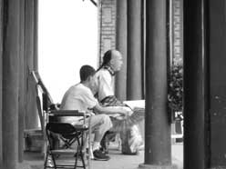 记者只好退出,继续寻找张默主演的《少年宝亲王》剧组。在离《纪晓岚3》剧组不到10米处,《少》剧也正在紧张拍摄。但记者一来到该剧道具车旁,一男工作人员就过来摇手,不准记者上前观看,直到记者退出5米外后,他才回到原处严密把守。记者转了半圈,刚从另一出口看到该剧摄像机,一位工作人员立即走近记者要求离开。于是记者只得守株待兔,期待主角张默能够中场出门。可是足足等了两个小时,目标也没出现。