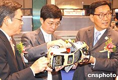 2004年香港夏季礼品、家庭用品及玩具展6日在会展中心开幕,展览会吸引了1300家来自19个国家及地区的公司参加,到会的主礼嘉宾对汽车模型产生浓厚兴趣。中新社记者:赵振清
