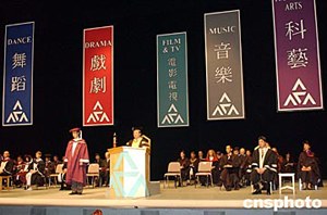 香港演艺学院,七月九日在香港举行第十八届毕业典礼,民政事务局局长何志平出席主持毕业典礼,向五位知名人士颁授香港演艺学院荣誉院士证书,向在舞蹈、戏剧、音乐、科艺等学科获奖毕业学生颁发专业文凭、专业证书。中新社记者:钱兴强