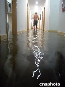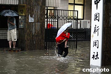 中国新闻社的地下室被淹,大厦停电。中新社记者:任晨鸣