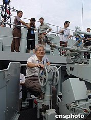 七月十一日,六百名幸运的南京市民,兴高采烈地登上了停靠在南京龙潭码头的中国海军第一艘远洋航海训练舰“郑和”号,亲身感受这艘以中国伟大航海家郑和名字命名的舰艇的风采。曾出访过多个国家的解放军海军“郑和舰”首次进入内河港口南京,既是追寻当年郑和伟大航迹的起点,也为南京纪念郑和活动增添光彩。作者:王晓红