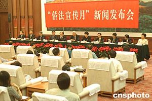 会上同时宣布,为了更好地宣传贯彻侨法,在全社会特别是国家行政机关增强侨务法制观念,更有效地保护归侨侨眷的合法权益,上述五个涉侨部门决定自《归侨侨眷权益保护法实施办法》颁布实施之日起,各级侨务部门在七、八月间,利用一个月左右的时间在各地组织开展“侨法宣传月”活动。通过组织专题讲座、专访、进行执法检查以及开展咨询、知识竞赛、举办政策法规培训等多种形式,加大侨法的宣传和贯彻力度。