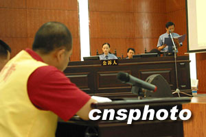“一二·二三”特大井喷事故案七月十四日上午九时三十分在重庆市第二中级人民法院开庭审理。图为被告人在听公诉人宣读起诉书。作者:邹辉
