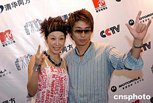 内地最佳男女歌手的候选人沙宝亮、孙悦(左)来到现场,希望能用自己的实力带动更多的投票。作者:徐曦弋