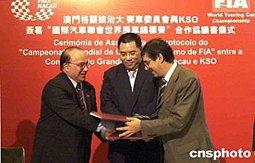 澳门格兰披治大赛车委员会,十五日在澳门举行记者招待会宣布:2005年的东望洋房车赛将成为“国际汽车联会世界房车锦标赛”(FIA WTCC)的压轴大戏。作者:梁永强