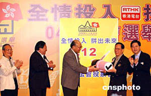 政务司司长曾荫权 、政制事务局局长林瑞麟、民政事务局局长何志平、选举管理委员会主席胡国兴大法官及立法会议员、区议会正、副主席、选举大使等出席典礼。  2004年香港立法会选举开幕典礼17日在文化中心大堂举行﹐政制事务局局长林瑞麟介绍选票。