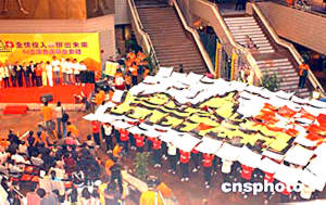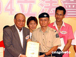 2004年香港立法会选举开幕典礼17日在文化中心大堂举行﹐选举管理委员会主席胡国兴大法官向选举大使颁发证书。