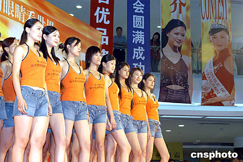 七月十八日,第三届南方新丝路模特大赛开营仪式在广州美博城举行。一百名美丽选手首次接受了公众和媒体的检阅。她们将在七月十九日到三十一日进行封闭式的美丽训练。作者:刘卫勇
