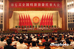 中新社北京七月二十日电 第七次全国归侨侨眷代表大会二十日在人民大会堂隆重开幕。胡锦涛、吴邦国、温家宝、贾庆林、曾庆红、黄菊、吴官正、李长春、罗干等党和国家领导人到会祝贺。