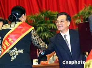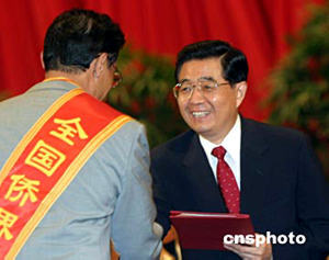 胡锦涛等党和国家领导人为受表彰的先进集体和先进个人的代表颁发了荣誉证书和奖牌。