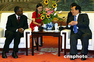 二○○四年七月二十一日,中国国家副主席曾庆红(右)在北京会见卢旺达外长穆里甘德(左)一行。中新社记者:郑萍萍