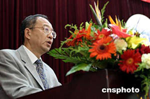 第四届中文电化教学国际研讨会二○○四年七月二十二日在北京语言大学召开。本届会议主题是“数字化对外汉语教学”,国外众多著名汉学家与会研讨,会上展示了数字化对外汉语教学的最新成果。图为国务院侨办副主任刘泽彭在大会开幕式上讲话。中新社记者:张勤
