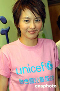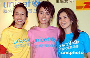 联合国儿童基金会“教育大使”杨采妮7月22日在香港出席联合国儿童基金会举行之《宁夏童心梦飞行》记者会,杨采妮与梁咏琪、莫文蔚将携手于八月前往内地宁夏地区亲善探访当地儿童。联合国儿童基金会香港委员会主席冯庆彪(右一)、副主席陈方安生(左二)与三位大使联同赞助商举行仪式,并呼吁各界踊跃捐款。作者:邓庆乐