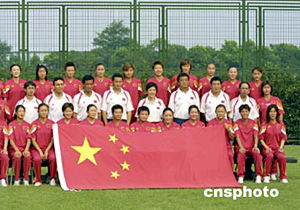 二○○四年七月二十三日,在上海备战雅典奥运的中国女子国家足球队举行赛前媒体见面会,并拍摄全家福照片为出征奥运留念。作者:汤彦俊
