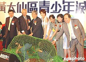香港黄大仙区青少年灭罪嘉年华24日在钻石山荷里活广场举行﹐歌星梁咏琪与来自社会各界人士出席并现场表演捉拿罪犯的场面。作者:赵振清