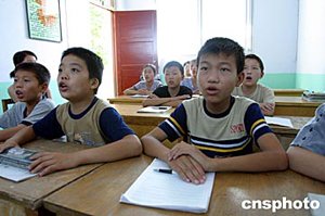 二○○四年七月二十四日,河南上蔡县芦岗乡艾滋孤儿在学习英语。据悉,该乡目前有近二百名因父母患艾滋病去世的“艾滋孤儿”。六月份该乡成立了专门收养艾滋孤儿的福利机构“芦岗乡阳光家园”,目前收养四十二名孤儿;二期工程将于八月底完工,计划新入园艾滋孤儿一百二十名。作者:慎重