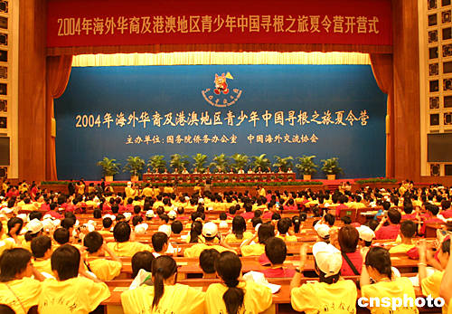 “2004年海外华裔及港澳地区青少年中国寻根之旅夏令营”开营仪式二十七日在北京人民大会堂举行,此次由国务院侨办和中国海外交流协会主办的夏令营共有三十六个国家和港澳地区的近四千名青少年参加。中新社记者:史利