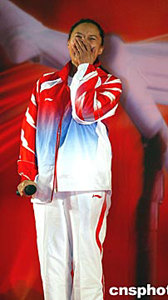 七月二十七日,即将出征雅典奥运会的射击运动员曹英身穿“锦绣中华”领奖服,出现在李宁公司赞助二十八届奥运会中国军团发布会现场。李宁公司此次特为中国奥运健儿准备了“锦绣中华”领奖服等装备。中新社记者:郑萍萍