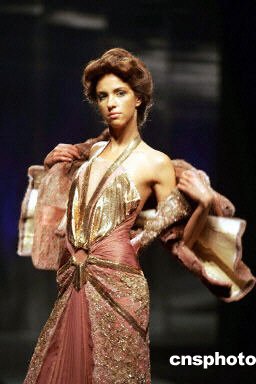 7月26日,黎巴嫩2004-2005秋冬时装展在贝鲁特举行。图为模特展示黎巴嫩时装设计师Basil Soda的作品。