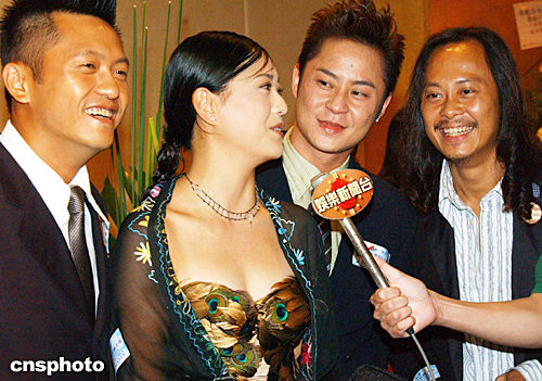 香港乐坛组合草蜢成员等,七月二十九日晚出席在香港举行的“世界和平女神之夜”晚会。中新社传真钱兴强摄乐坛组合草蜢出席“世界和平女神之夜”晚会。香港乐坛组合草蜢成员等,七月二十九日晚出席在香港举行的“世界和平女神之夜”晚会。中新社记者:钱兴强