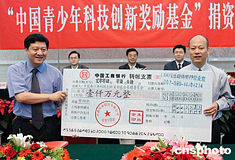 另外,还有不少企业表示愿为基金捐款,以鼓励更多的青少年进行科技创新。今天上午,浙江卡森公司率先向基金捐款一千万元,这也中国青少年科技创新奖励基金筹集到的第一笔社会捐款。卡森公司是一家从事皮革行业的民营企业。该公司董事长朱张金称,没有邓小平,就没有民营企业的今天,也没有他个人的今天。