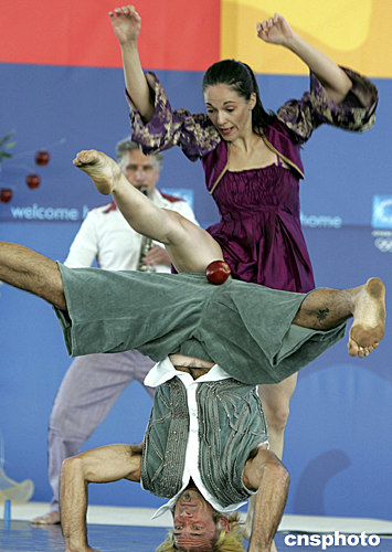 一支激情四射的希腊舞蹈团,当地时间8月2日在雅典奥运村内为世界各地来宾表演“爱情恩怨”现代精彩舞蹈。中新社记者:任晨鸣