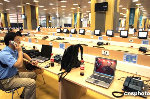 (当地时间)二○○四年八月三日,据有关人士透露:位于希腊雅典奥运会主体育场外的记者新闻中心只提供收费拨号传输,没有先进的宽频数据传输服务。中新社记者:任晨鸣