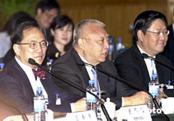 中新社广州八月三日电(记者陈国华)三日下午,香港特首董建华乘直通车抵达广州,参加四日在广州举行的粤港合作联席会议第七次会议。广东省省长黄华华在董特首下塌的饭店迎接其一行的到来。